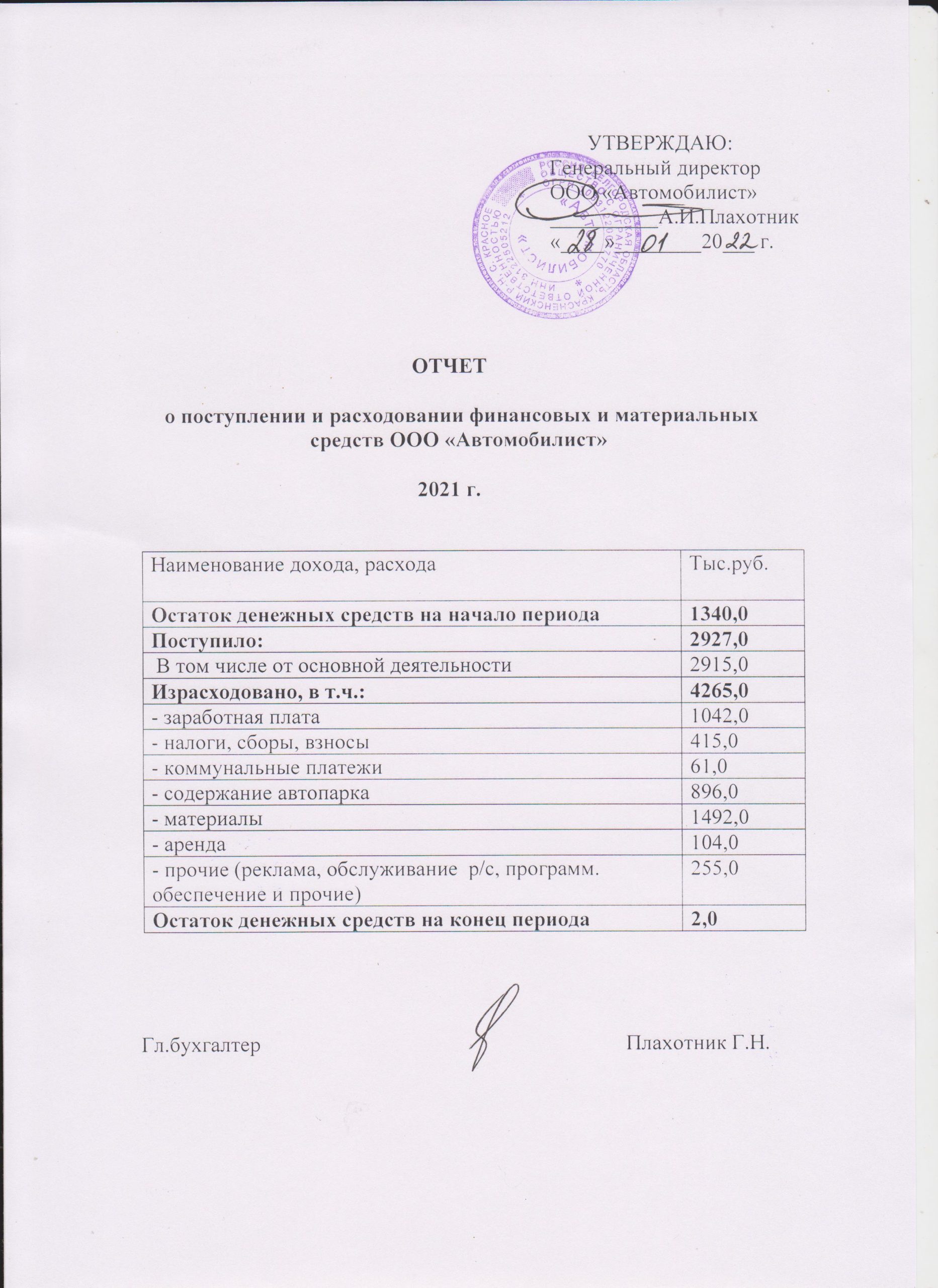 Финансово-хозяйственная деятельность Отчеты о поступлении и расходовании финансовых и материальных средств